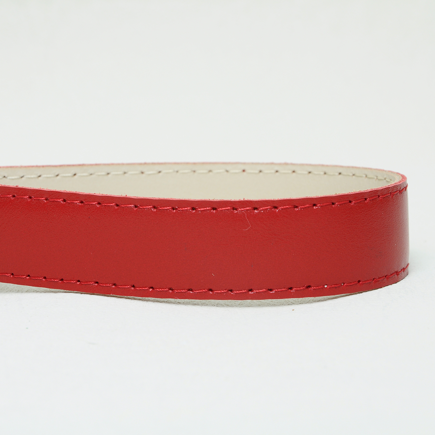 Smycz dzięki takiemu połączeniu ma wiele zalet. Jest miękka, lekka, można ją zwinąć, złożyć, jest wygodna w użytkowaniu. Kolor skóry: nasycony czerwony, spód beżowy. Kolor taśmy: czarny. Przy naszych smyczach stosujemy dwa rodzaje karabinków: spustowe wykonane z brązu, które umożliwiają szybkie odpięcie i zapięcie psa oraz klasyczne, najbardziej popularne karabinki niklowane (srebrne).