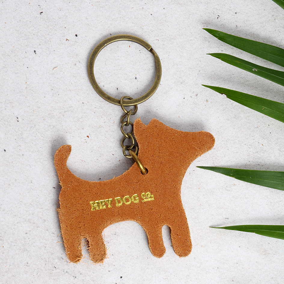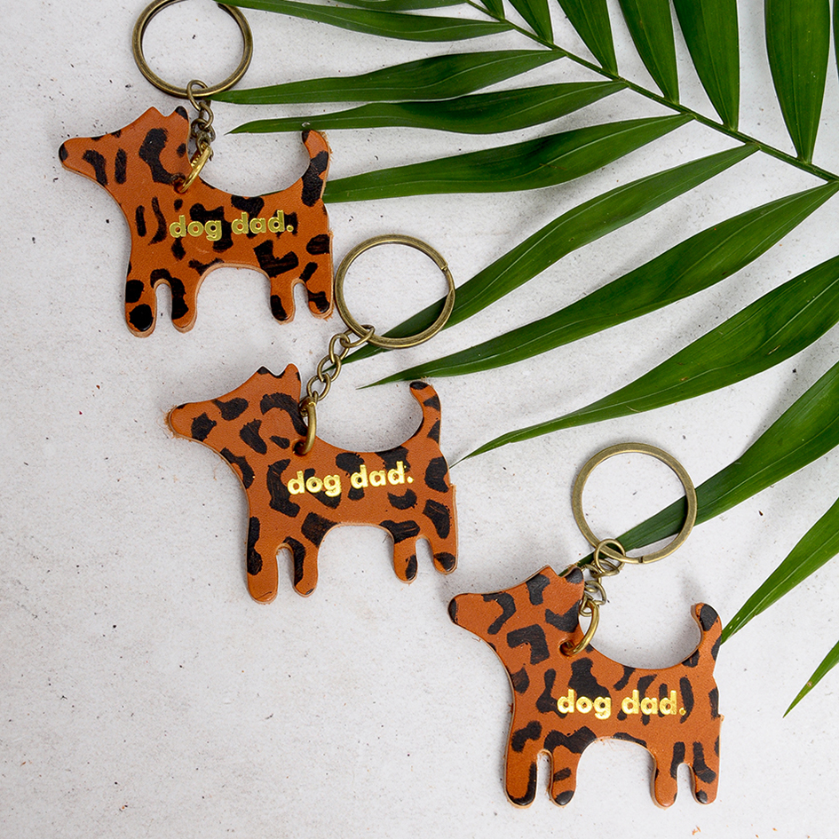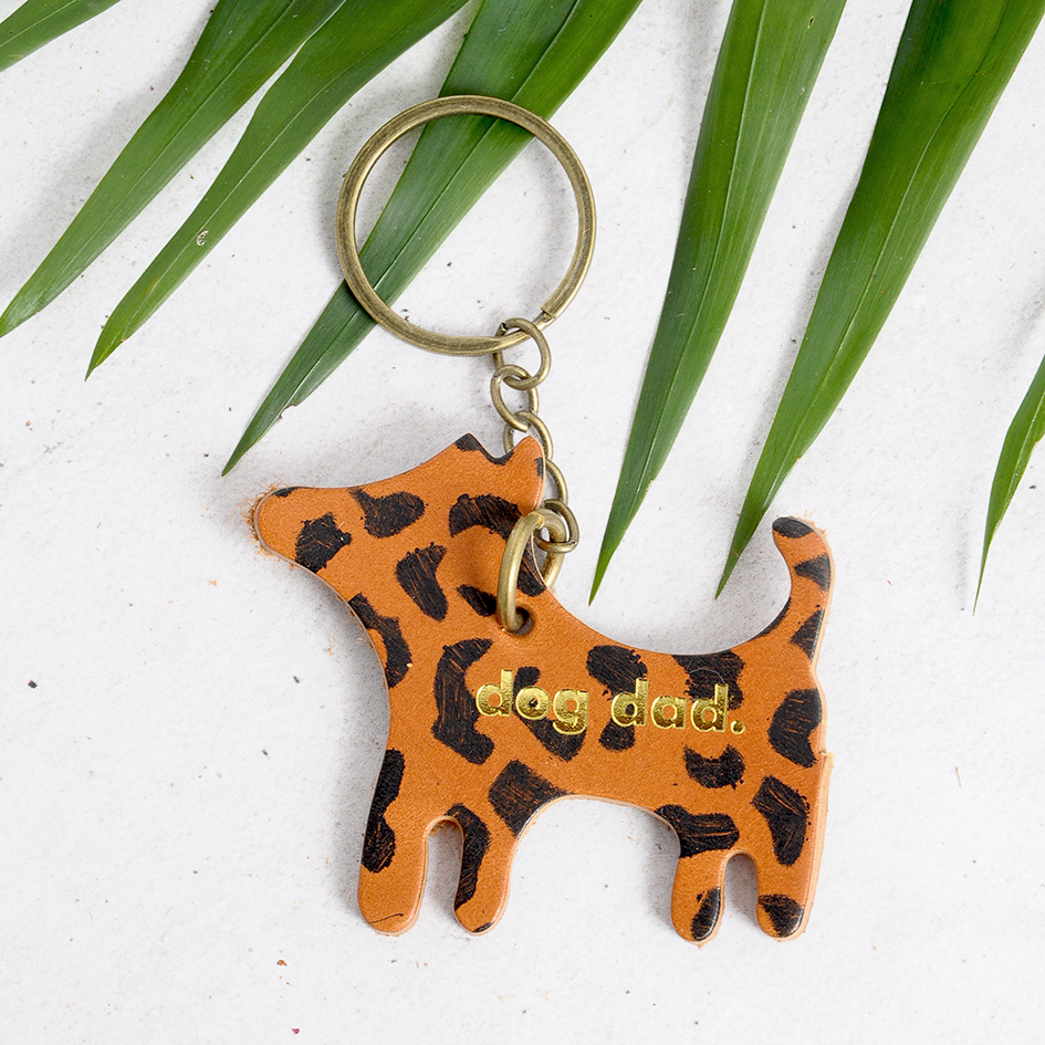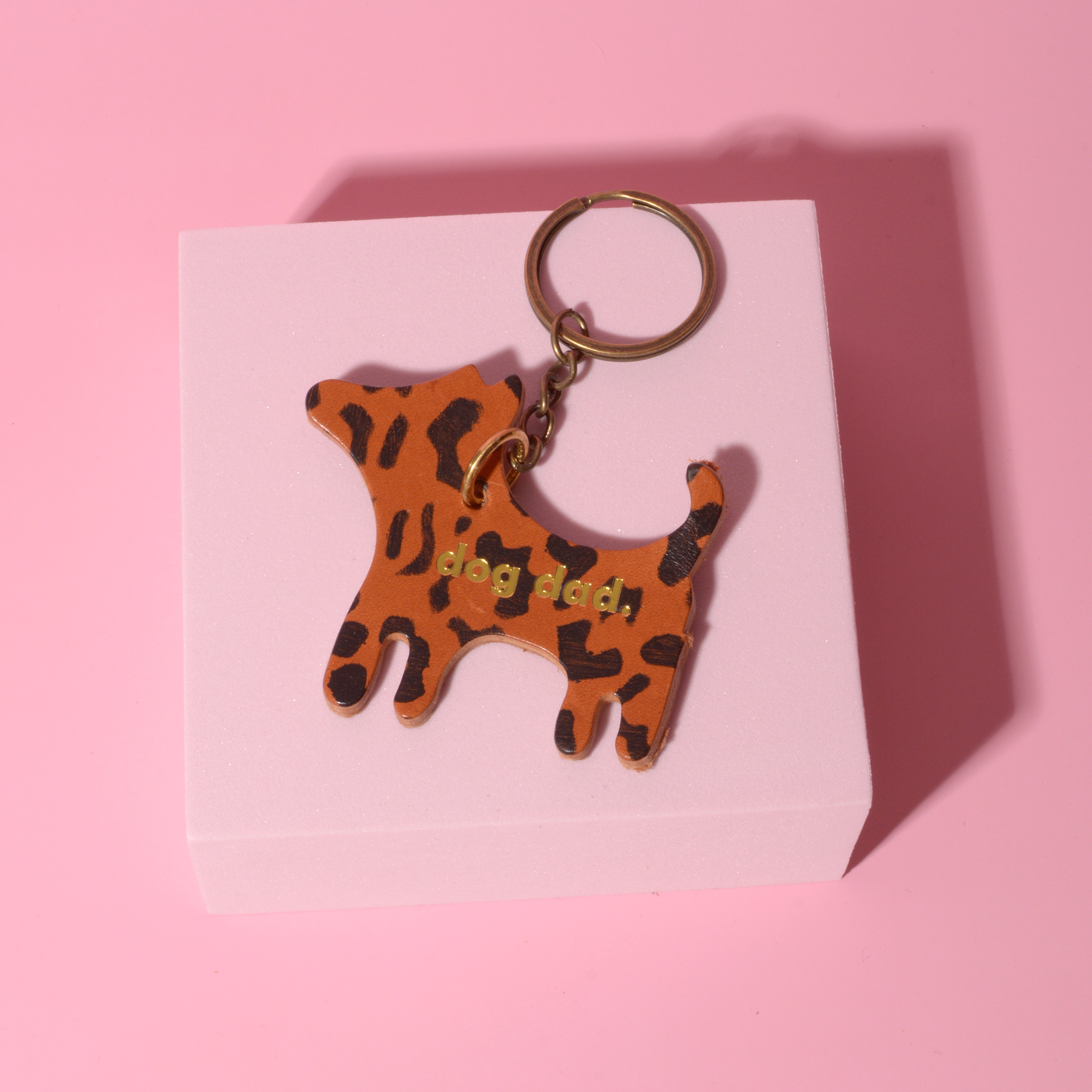 Dog Dad Cognac Leopard (Old Gold) keyring.