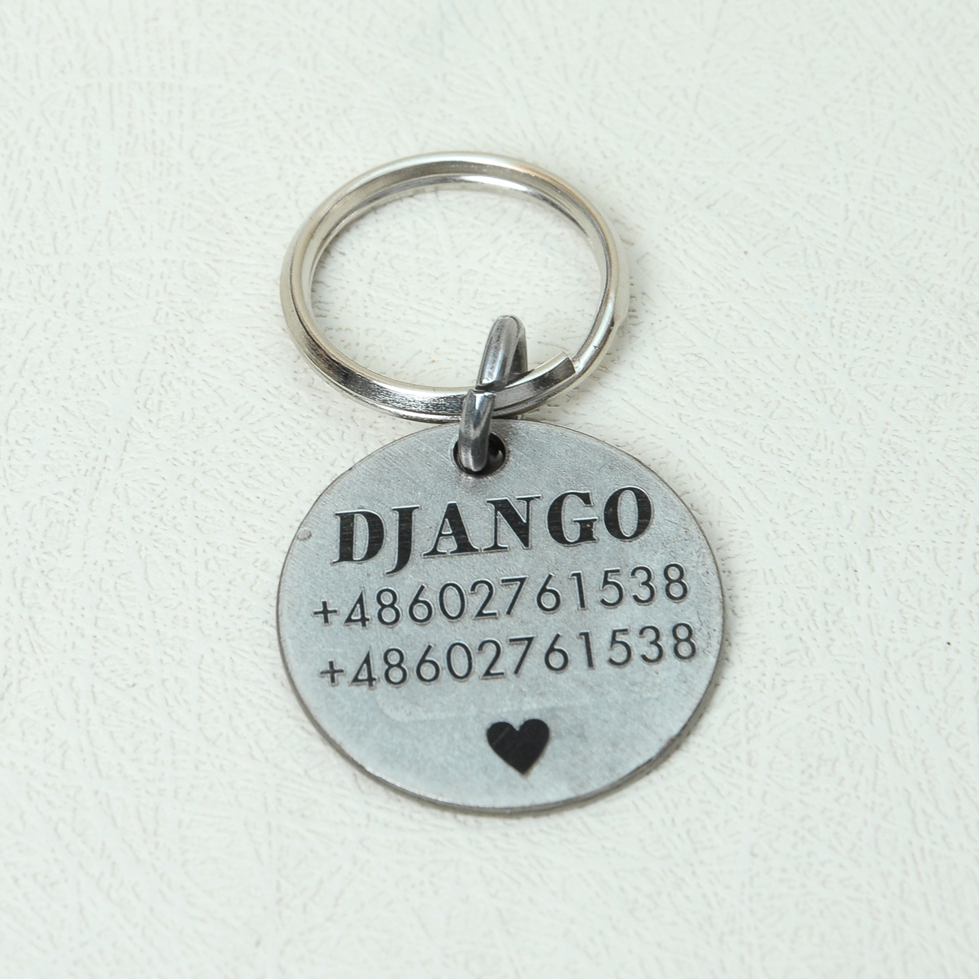 Please write in the ORDER NOTE what you want to put on the tag. It’s very important. In addition to the name and number, we can also put a cute heart. If you want an engraving with a heart (look at the pictures), select HEART —> YES or NO.