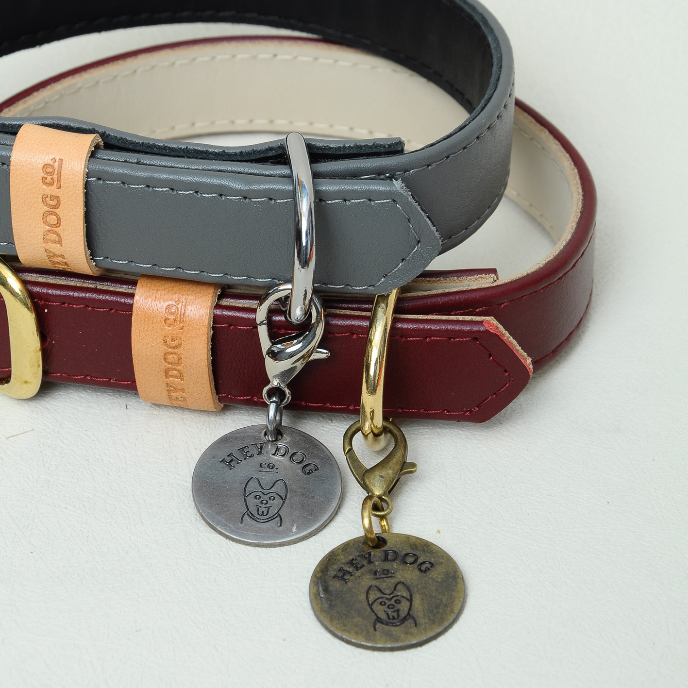 Możesz zamówić u nas opcję graweru na medaliku. To podstawowe zabezpieczenie Twojego psa. Tag przy obroży zwiększa szansę na szybki kontakt z opiekunem w przypadku ucieczki lub zaginięcia psa. Z jednej strony widnieje logo HEY DOG Co. Grawer wykonujemy na drugiej stronie. Możemy zamieścić imię z numerem telefonu (zmieszczą się dwa numery), mieści się adres, Twoje imię i nazwisko, info “mam chip”, “biorę leki” itp. Generalnie mieści się 4-5 linijek. Jeśli podróżujesz z psem za granicę warto dodać numer kierunkowy swojego kraju. Dodatkowo decydujesz czy medalik ma mieć urocze serduszko czy nie (patrz zdjęcia). Serce wybierasz w opcjach produktu zaznaczając YES lub NO. Medalik jest wykonany ze stopu cynku z powłoką w kolorze starego srebra. Z myślą o tych, którzy nie lubią wysokiego połysku. Grawer wykonujemy laserowo, bardzo mocno, dzięki temu napis się nie ściera, jest trwały (przetestowane na własnych psach!). Proszę wpisać w notatce do zamówienia (ORDER NOTE w koszyku pod danymi adresowymi) co ma się znaleźć na zawieszce. Mamy dla Was trzy możliwości zapięcia medalika do obroży: zapięcie okrągłe, mały karabinek i karabinek większy.