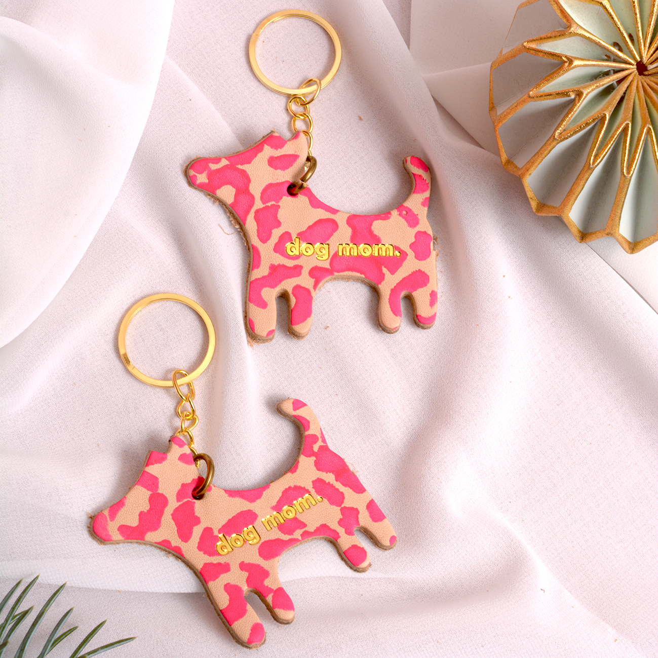Gold hot stamping ‘DOG MOM’.