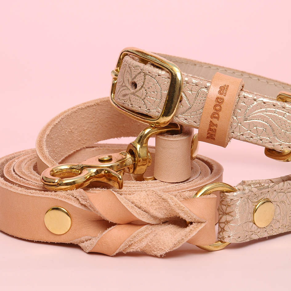 Golden Flowers Leash – Elegant braided leash for special occasions! It fits perfectly with the ‘Golden Flowers’ collars.