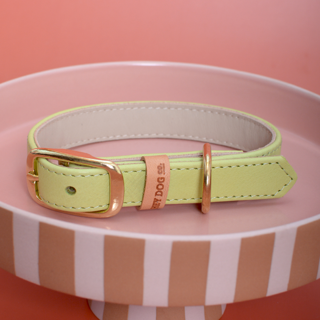 Obroża Lime Creme wykonana jest ze skóry naturalnej, co gwarantuje jej nie tylko piękny wygląd, ale i trwałość.