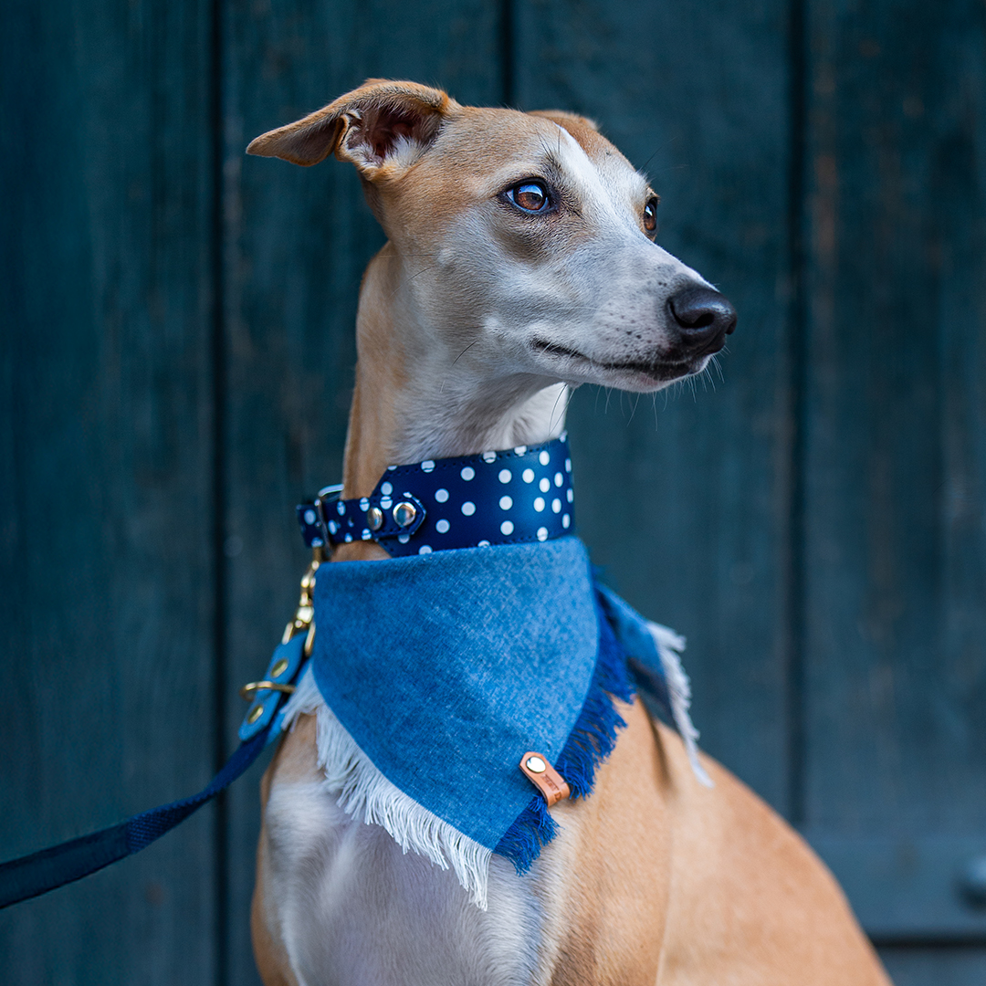 Wraz z obrożą ‘Navy Blue polka dot‘ akcesoria stworzą uroczy zestaw dla Twojego pupila i Ciebie.