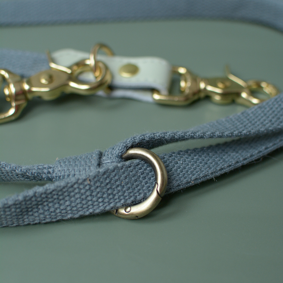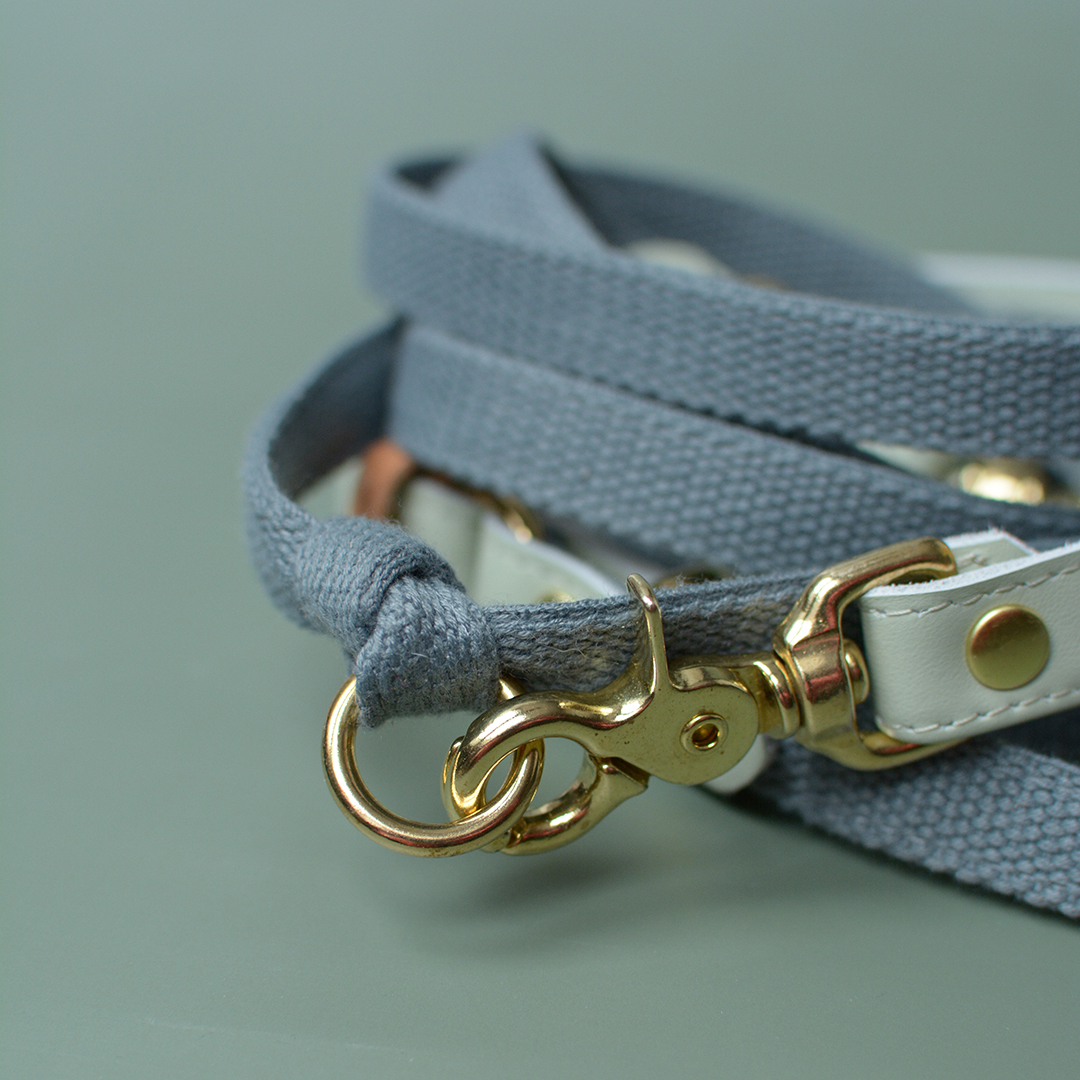 One of the most popular leashes in our offer! The leash is made of leather and cotton tape. Three different lengths. A light, designer city leash for everyday walks with your pet. The leash has a ‘hands-free’ function and can be fastened over the shoulder and used without being held with your hands.