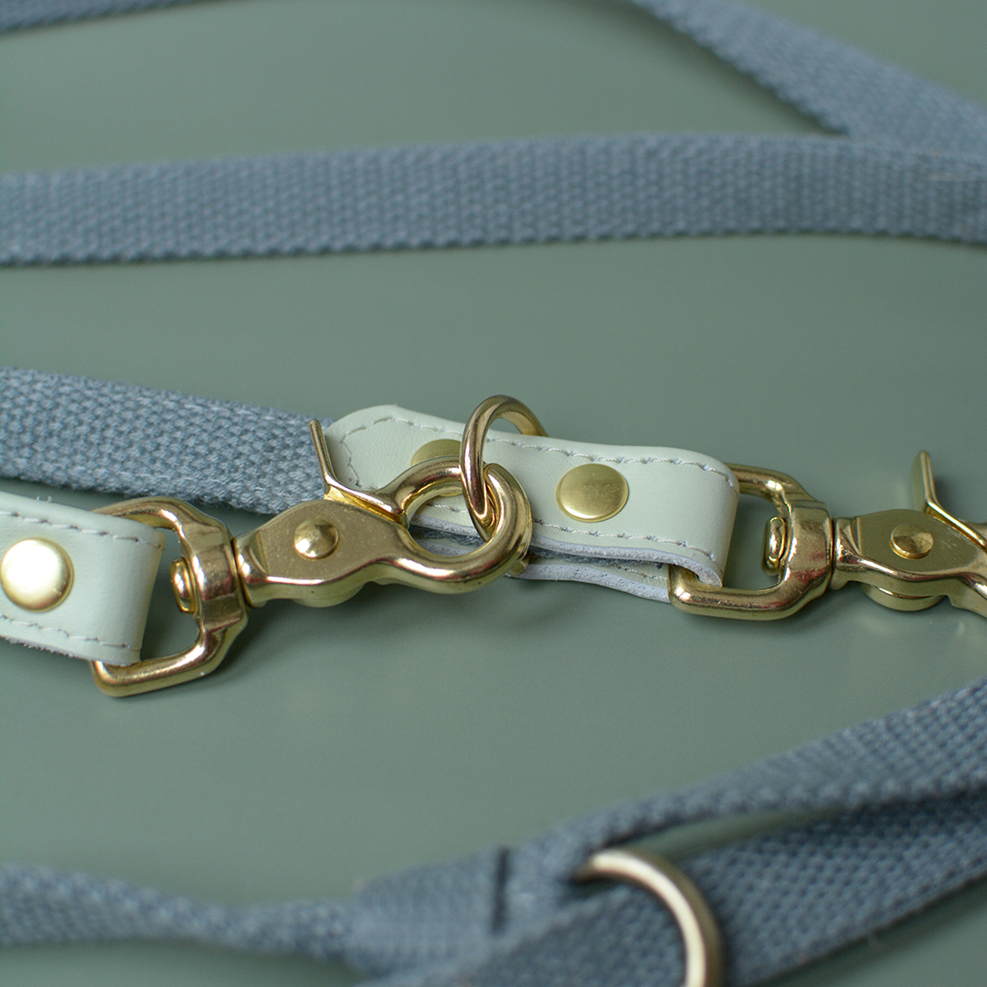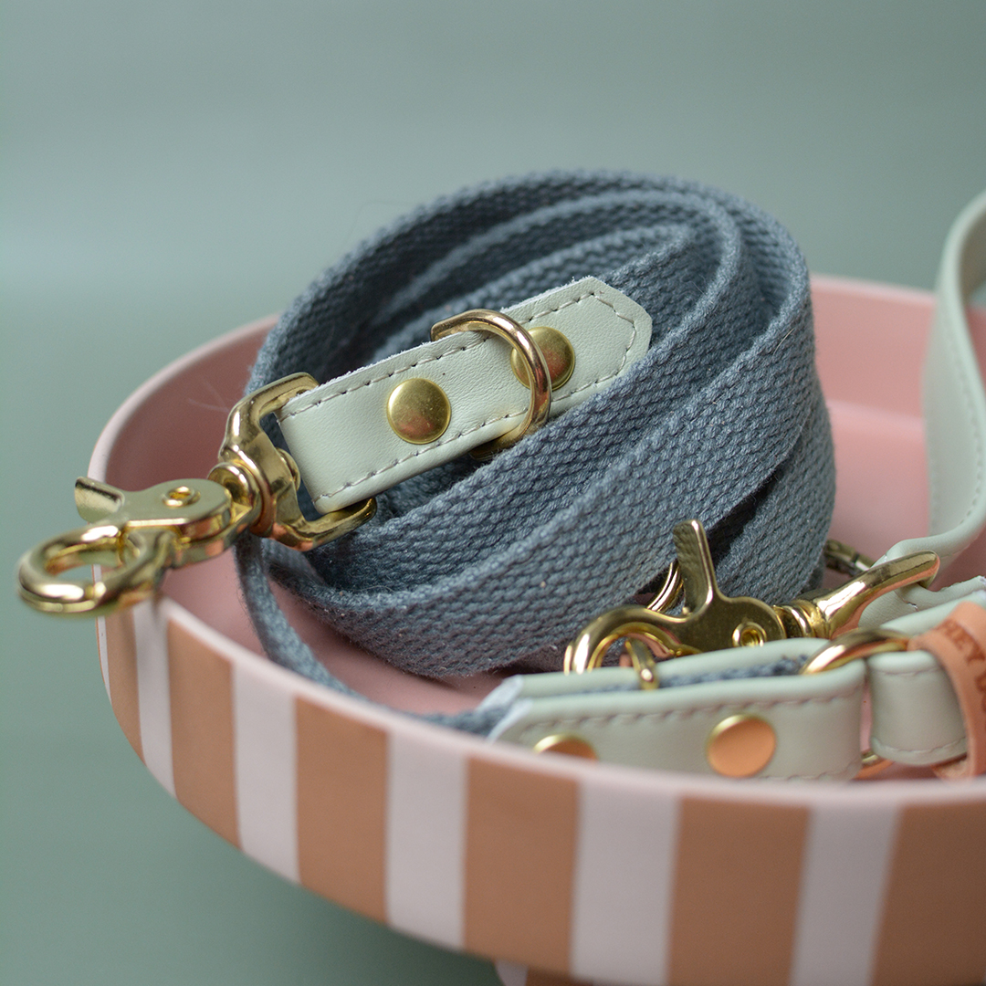 Smycz regulowana ‘Pistachio Creme’ / Skórzana rączka z bawełnianą taśmą.