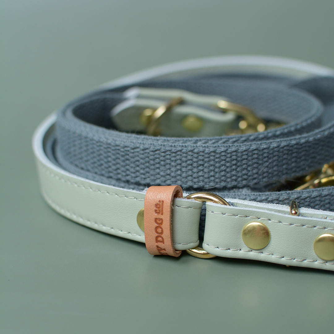 ‘Pistachio Creme’ adjustable leash / Leather with tape.