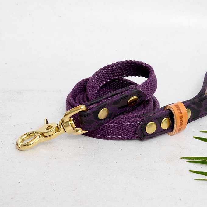 Unique purple leopard pattern. Elegant and stylish city leash. Made of genuine leather combined with strong tape. Our leashes are light and comfortable to use. Leather color: purple. Tape color: purple. Hardware is made of solid brass polished to a high gloss. We suggest setting up this leash with a HEY DOG Purple Leopard collar, making your dog stylish and exceptional.