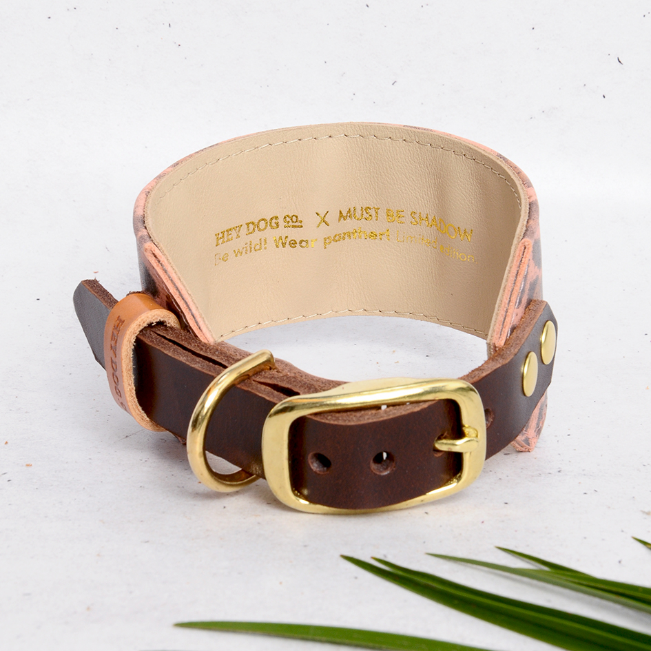 Obroża pochodzi z wyjątkowej i limitowanej kolekcji “PINK PANTHER”, którą stworzyliśmy wspólnie z Must Be Shadow FCI. Każda obroża i smycz jest sygnowana. Oznaczona specjalnym napisem informującym o naszej współpracy. W kolekcji znajduje się 5 różnych wzorów w panterkę.