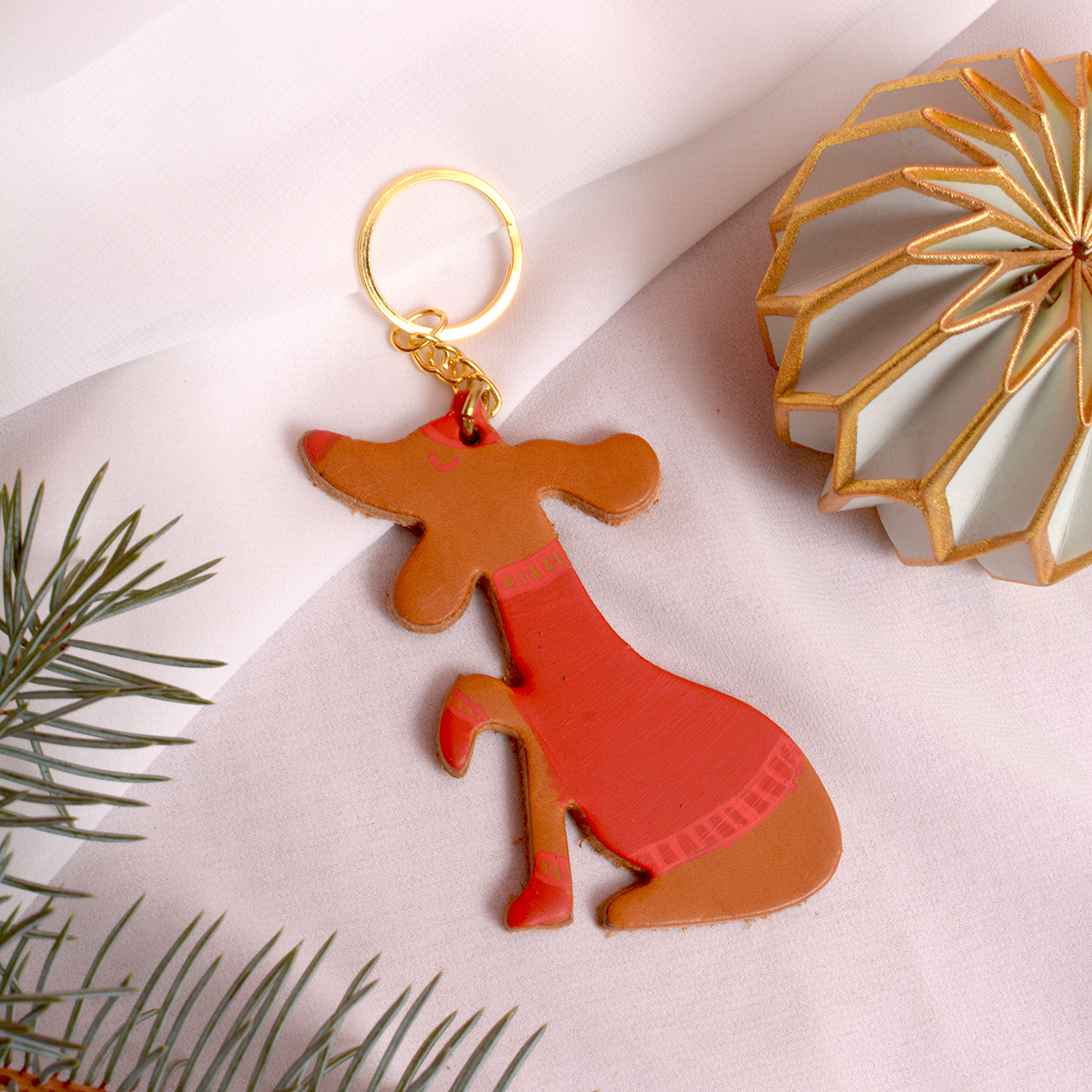 Dachshund in a sweater. The perfect keychain for dachshund lovers. Hand-painted.