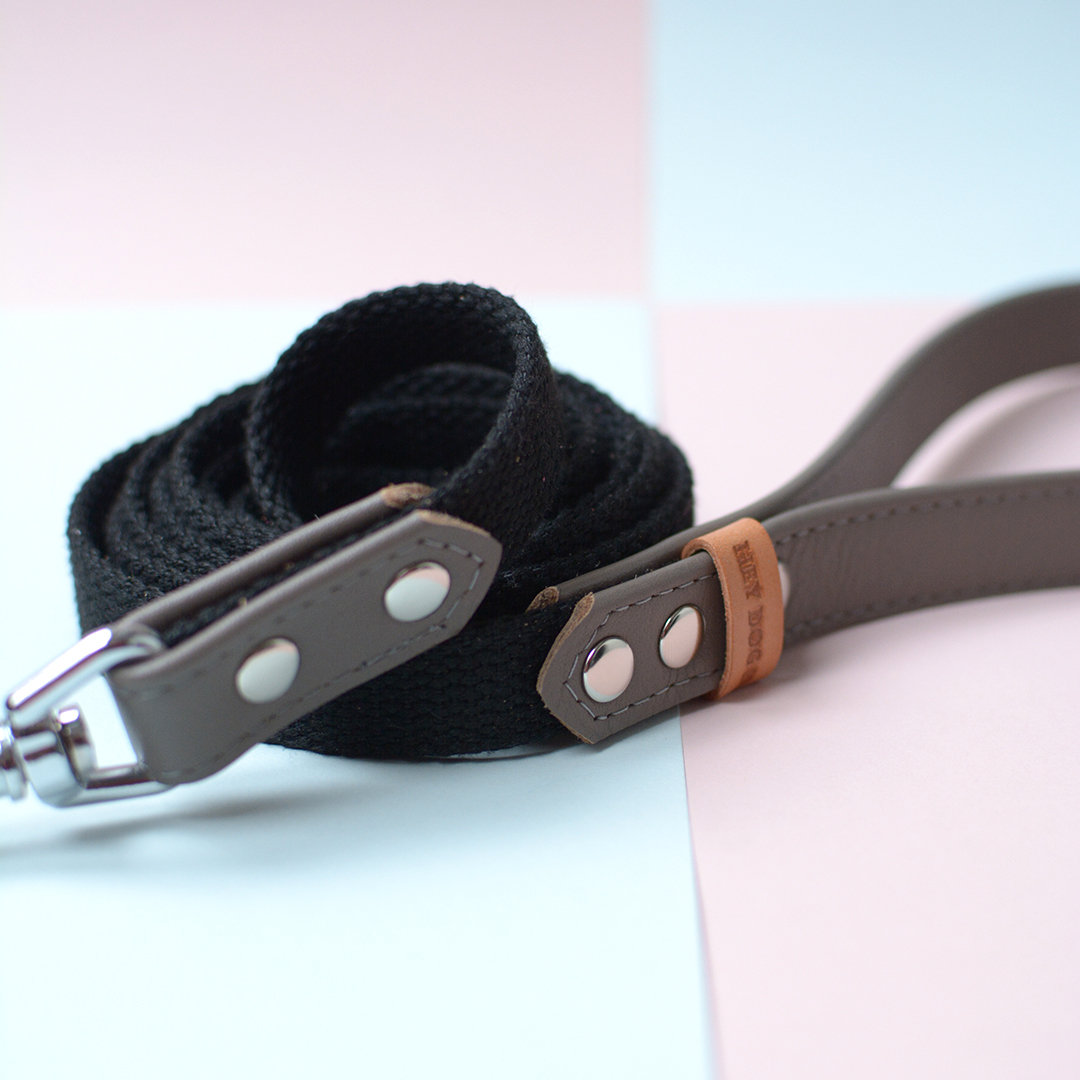 Made of soft genuine leather combined with strong, cotton tape. Our leashes are light, soft, and comfortable to use. Leather color: brown-grey. Tape color: black. Hardware is made of solid brass especially for pet accessories. The hardware is elegant and polished to a high gloss. We suggest setting up this leash with a HEY DOG Taupe collar, making your dog stylish and exceptional. HEY DOG leashes are made in a few sizes (length and width), check our SIZES table. Want to buy a different length? Please write us at hey@heydog.co. We make custom orders.
