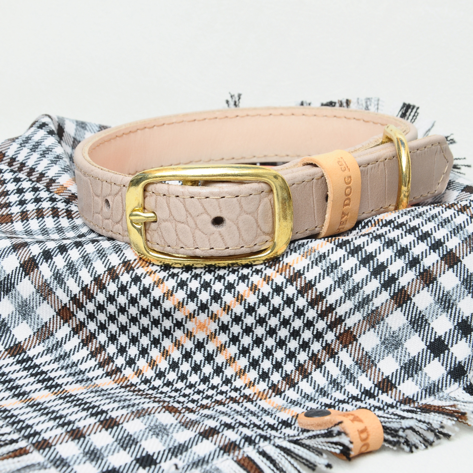 Complete the look with a Stone, Dijon, or Cognac collar and make your dog stylish!