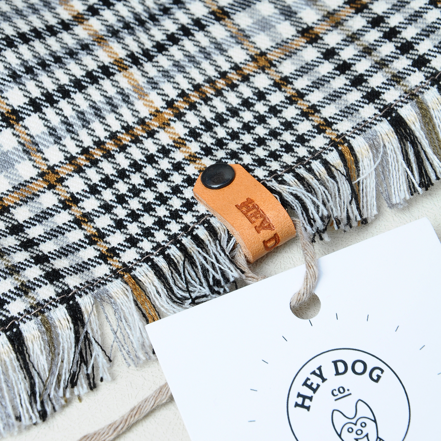 Bandana dla psa lub kota, wykonana z miękkiej wiskozy. Elegancka z ozdobnym, ręcznie strzępionym brzegiem, doda uroku Twojemu pupilowi. Styl retro. Piękna kolorystyka: kremowy, czarny, odcienie brązów. Bardzo miękka i przyjemna w dotyku. Możesz ją zestawić z wieloma naszymi obrożami i stworzyć stylowy zestaw dla swojego psa.